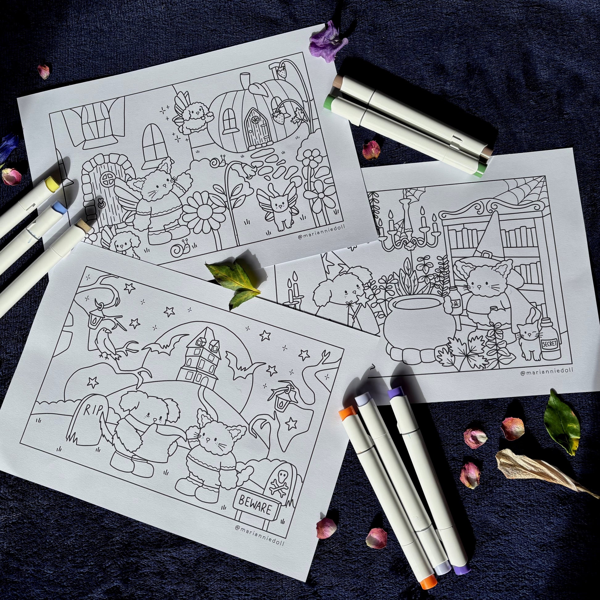 - 3 high-quality Halloween colouring pages (PDF and PNG format).